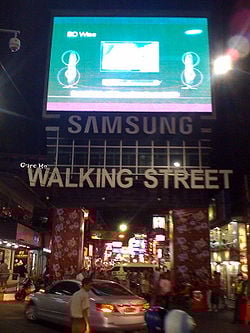- Walking Street ist ein Teil der Stadt und ein Rotlichtviertel in Pattaya. Es ist eine ganz normale Straße am Tag, aber am Abend, ist es nur für Fußgänger und alle Clubs und Go-go-Bars öffnen ihre Türen.